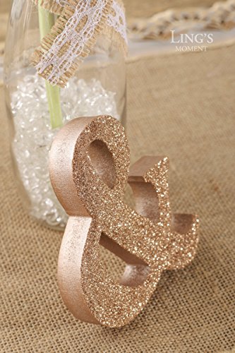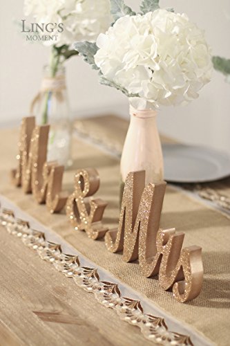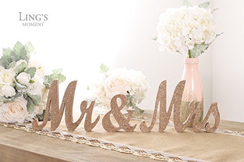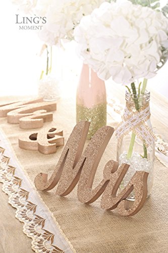 Ling's moment Medium Vintage Exquisite Rose Gold Glitter Mr & Mrs Signs Elegant Wooden Freestanding Letters For Wedding Sweetheart Table or Receptions Table Decorations NO GLITTER FALLING OFF