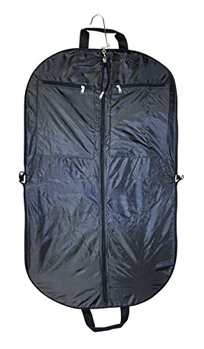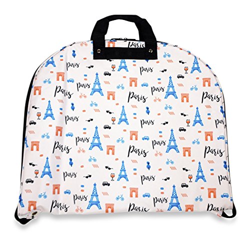 Product Description Take your dress clothes with you confidently on vacation with this stylish garment bag! This piece of lightweight luggage is great for jet setters and can be used for a quick, close by staycation or for a weekend excursion to your favorite retreat. Made out of durable 600 Denier Polyester fabric in a chic print. This garment bag folds in half and can be hung by its metal hook. The interior of this bag features multiple zipper pockets to hold shoes and accessories. Perfect for transporting cheer uniforms or theatre costumes to and from while keeping them clean and wrinkle free! Organize your closet and keep delicate, high quality items neat and pristine. 0
