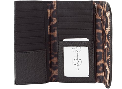 Carry your cash and cards in this classic Jessica Simpson Katie Flapover Wallet, Exterior Features; Quilted Design, Signature accent, and Snap Flapover closure, Interior features; 12 credit card and 1 ID slots, bill pocket and zippered coin pocket. Great for exceptional organization in sleek styling.