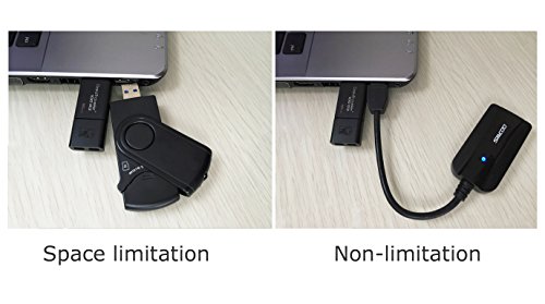 Easy portability design, with a 13CM flexible USB cord to enable connections in tight spots next to larger USB plugs.