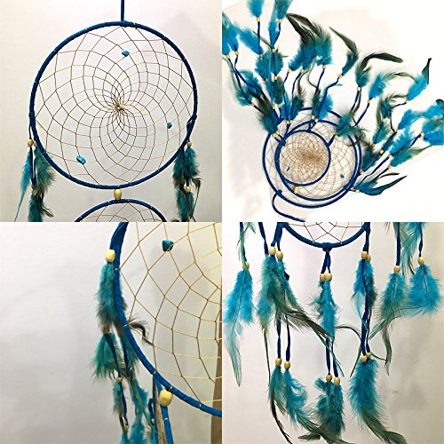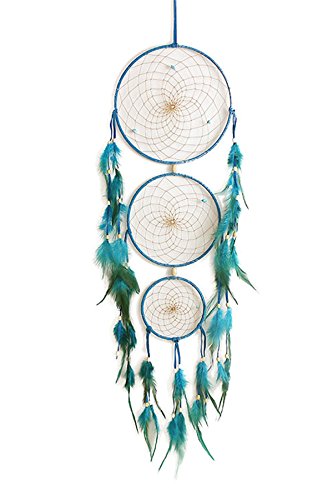 Jescrich Turquoise Dream Catcher Car Wall Hanging Ornament 3 Ring Dreamcatcher Wall Craft Gift(Blue)