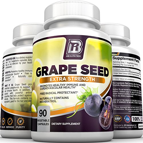 -. Binding : Health and Beauty -. Brand : BRI Nutrition -. EAN : 0638353965501 -. Feature : ★WHY US: We looked at all other Grapeseed Extract supplements on the market and were surprised by the low Proanthocyanidins count or the use of gelatin (dead cow), yuck! We decided we should source the strongest ingredients at clinical strength (95% Proanthocyanidins) and sell them at a reasonable price, passing all the benefits on to you. / ★NATURES GIFT:Our Grapeseed Extract is the highest grade grapeseed extract on the market today. We pack every serving with 500mg of pure Vitis Vinifera load with Proanthocyanidins standardized to 95%. No where on the market will you find a 95% with 500mg. This is the most powerful anti-oxidant and free radical scavenger known which is 20 times stronger than vitamin C and 50 times stronger than vitamin E, also enhances the effectiveness of other anti-oxidants at naturopathic Strength / ★PURITY:We use only the very best, scientifically-tested ingredients, all of which are manufactured in our US, FDA-inspected, state-of-the-art, facility, with strict adherence to good manufacturing practices. Every batch is third party tested to ensure that we only utilize ingredients that are safe and pure. OUR GUARANTEE: We're very confident that you'll love this product that we offer a 100% money-back guarantee. / ★SHARE:Consider ordering one bottle for yourself and another for a friend or loved one. Keep each other motivated and reach your goals together and more quickly. BRI Nutrition stands by every quality product they make. We manufacture only premium and extra pure but high potency vitamins, capsules, pills, tablets, powders, multivitamins, supplements, topical creams, liquids, serums, vegan foods, and natural organic-based herbal extracts for men, women, and children. -. IsAdultProduct : 0 -. Label : BRI Nutrition -. Manufacturer : BRI Nutrition -. MPN : 6383539655011324FBA -. PartNumber : 6383539655011324FBA -. ProductGroup : Health and Beauty -. ProductTypeName : HEALTH_PERSONAL_CARE -. Publisher : BRI Nutrition -. Studio : BRI Nutrition -. Title : BRI Nutrition Grapeseed Extract - 95% Proanthocyanidins 400mg Servings - Strongest Standardized Extract On The Market - 90 Veggie Capsules -. UPC : 638353965501