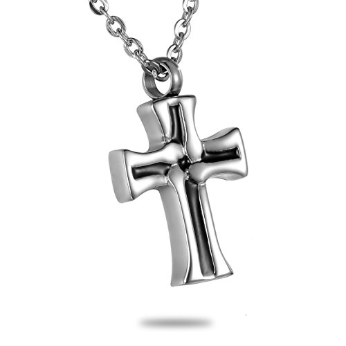 -. Title : HooAMI Black Inlay Cross Pendant Cremation Urn Necklace
