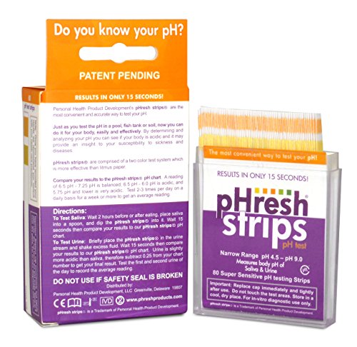 -. Binding : Health and Beauty -. Brand : pHresh Products -. EAN : 0609613653735 -. Feature : Test Your Bodies pH in .25 Increments Using Urine or Saliva For Accurate Results in 15 Seconds! / Easy To Read Results With Dual Reagents To Ensure Super Sensitivity and Accuracy! / pHresh Strips Are The Easiest and Most Convenient Way To Test Your pH! / FREE Alkaline vs. Acidic Food Chart With pH Tracking Log in Every Package! -. IsAdultProduct : 0 -. Label : pHresh Products -. LegalDisclaimer : *The Food & Drug Administration has not evaluated these statements. Our products are not intended to diagnose, treat, prevent or cure any disease. -. Manufacturer : pHresh Products -. Model : PHST80 -. MPN : PHST -. NumberOfItems : 1 -. PackageQuantity : 1 -. PartNumber : PHST -. ProductGroup : Health and Beauty -. ProductTypeName : HEALTH_PERSONAL_CARE -. PublicationDate : 2014-12-27 -. Publisher : pHresh Products -. ReleaseDate : 2014-12-24 -. Size : 80 Strips -. Studio : pHresh Products -. Title : pHresh Products pH Test Strips, 80 Count -. UPC : 731646287691