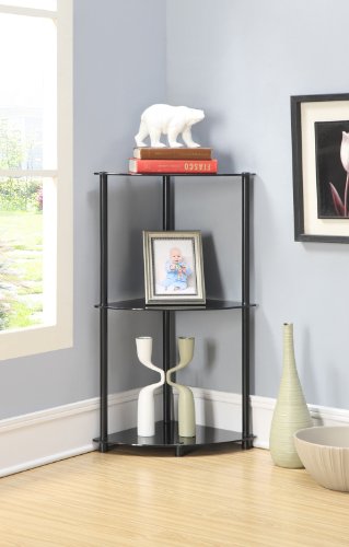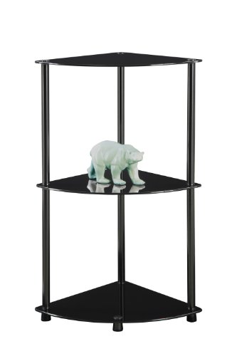 Contemporary styling is the essence of Convenience Concepts Inc., midnight collection . The clean, sleek lines define the three tier corner shelf. Stainless steel clad poles won't rust. Easy, no tools required assembly sets up in minutes. Will provide years of enjoyment. Three black tempered glass shelves.Feature