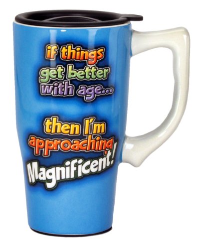 This Ceramic Travel Mug is perfect for anyone on the go! With a locking lid and a skid plated bottom this mug is the perfect travel companion. The double wall insulation keeps drinks hot or cold and it is both microwave and dishwasher safe.Feature
