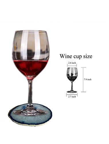 Agate Coaster Cup Mat Dyed Sliced Agate Beverage Coasters for Drinks Gift Set of 4 Plates Blue 3-3.5" By Amoystone
