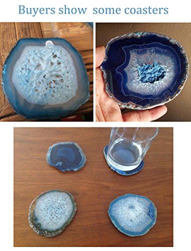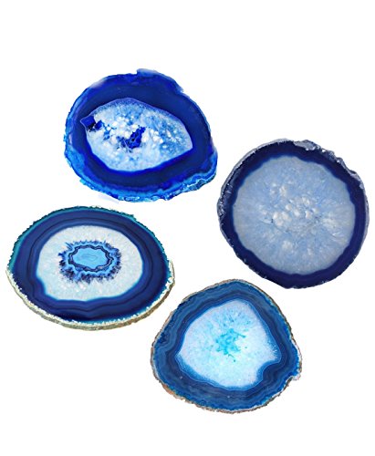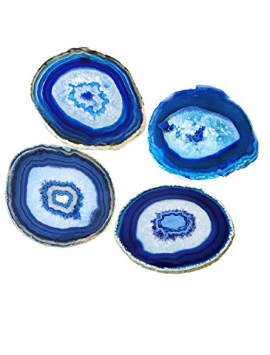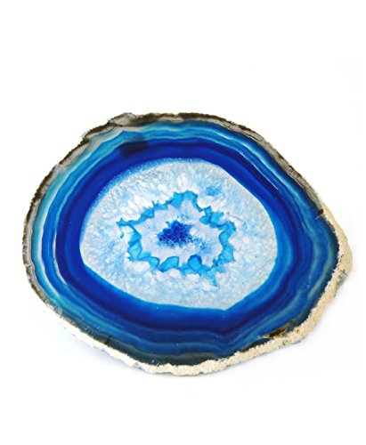 - DYED AGATE Geodes: Decorative coasters sliced from natural DYED AGATE Geodes, these coasters are dyed blue to accommodate a variety of decorative themes
