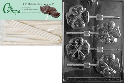 Cybrtrayd 45St25-P002 Shamrock Lolly Patriotic Chocolate Candy Mold with 25 4.5-Inch Lollipop Sticks