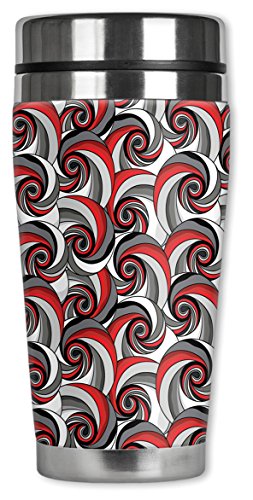 Mugzie 853-MAX "Grey Waves" Stainless Steel Travel Mug with Insulated Wetsuit Cover, 20 oz, Black