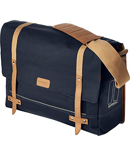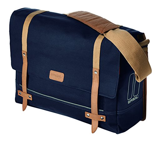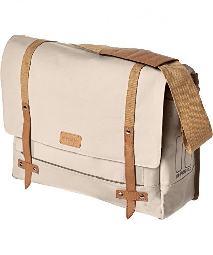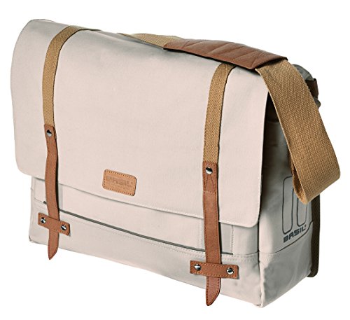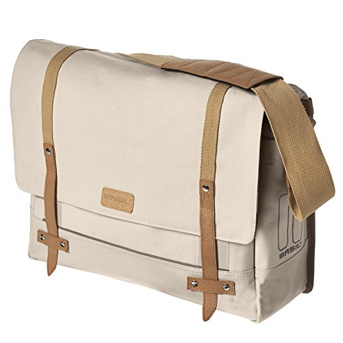 - This stylish Basil messenger bag is made from high quality cotton and includes a convenient rain cover. Features a large main compartment for plenty of storage and a padded laptop compartment for laptops up to 15". Hook on system permits easy and safe mounting on carriers with replaceable hooks that can be adjusted in six positions.