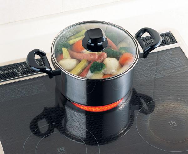 | 使えば納得!調理中も中身が見えるガラス蓋付。 |
