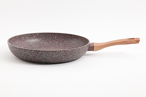 112077.01 Gibson Home Orestano Forged Aluminum Fry Pan, 5 Layer Granite look Nonstick interior and exterior with wood look handle 12 inch Frying Pan. Beautiful and durable and unique Orestano cookware collection. This fry pan features state of the art high quality five layer granite like non-stick interior and forged aluminum construction. This skillet features a soft grip wood like bakelite handle that remain cool while cooking. Get yours today.Feature
