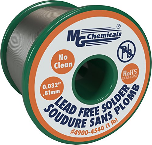 MG Chemicals SAC305, 96.3% Tin, 0.7% Copper, 3% Silver, No Clean Lead Free Solder, 0.032" Diameter, 1 lbs Spool