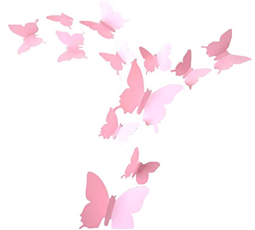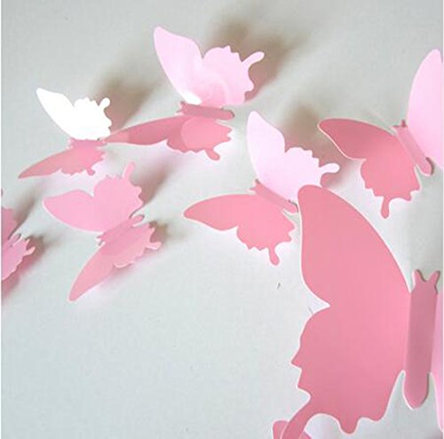 LOLOAJOY 36PCS/Set 3D Home Decoration Removable Butterfly Wall Stickers Pink