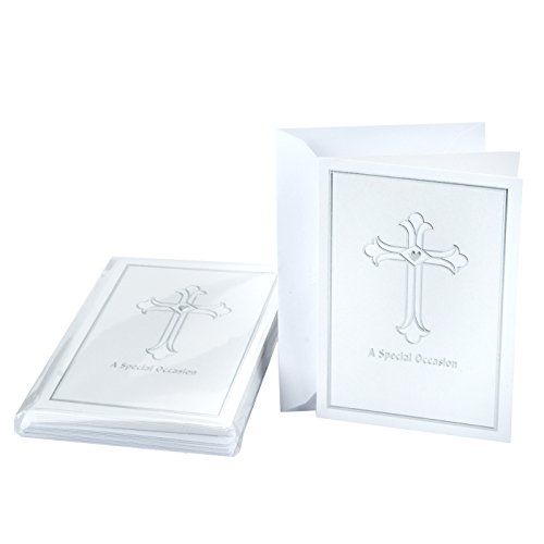 Made with high-quality cardstock paper, these sophisticated cards feature decorative edging and a cross embossed with silver foil, along with the phrase "A Special Occasion".