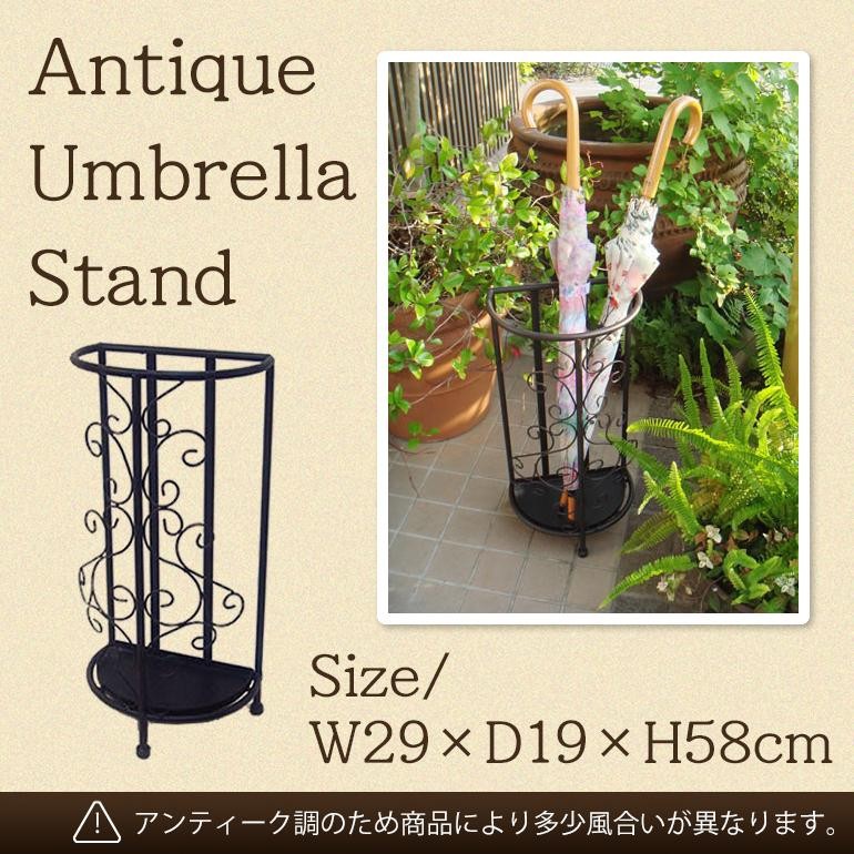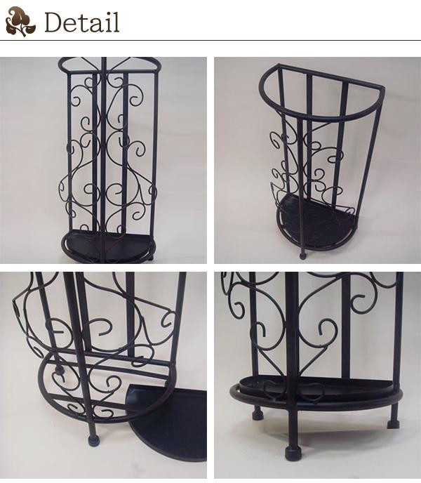 形が半オーバル(半円型)なので場所もとらず、壁面に置くことができます。 製造国:中国 素材・材質:アイアン 商品サイズ:(約)幅29×奥行19×高さ58cm 重量:約1.7kg 仕様:完成品雨受取り外し可能 ※サプライヤー直送品【商品名】アンティーク調 アイアン傘立て 1406KFM004