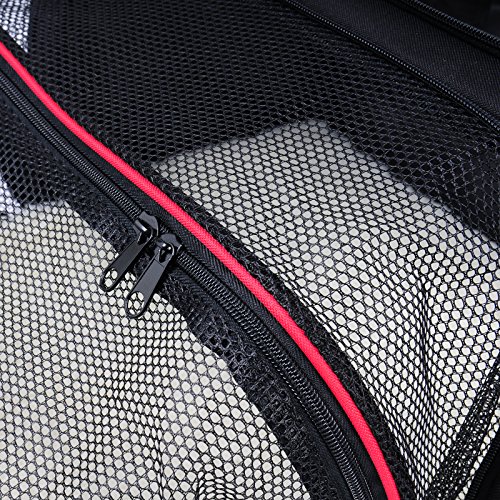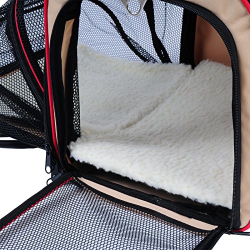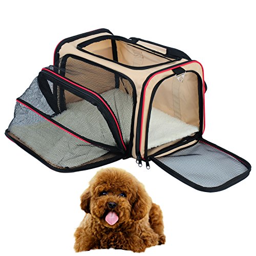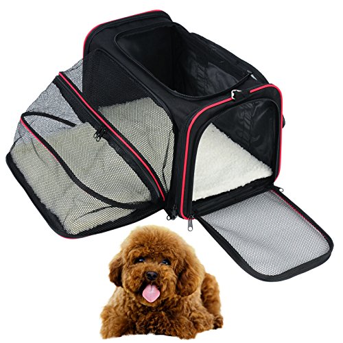 -. Feature : Made of Oxford fabric, sturdy, warshable and durable, will make your pets feel secure and cozy / 3 mesh doors(1 expandable side) provides good air ventilation and ample space / Sets up and folds flat in seconds,very convenient to take anywhere / 2 fleece paddings and an adjustable shoulder strap are provided / Size:18.9"Lx11.8"Wx11.8"H, ideal for small puppies, please measure your pet's size to make sure the space is ample