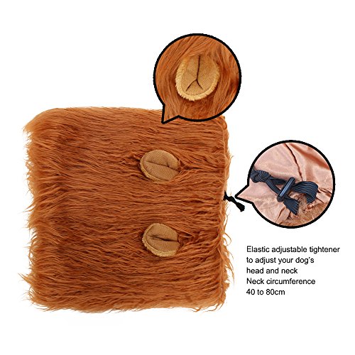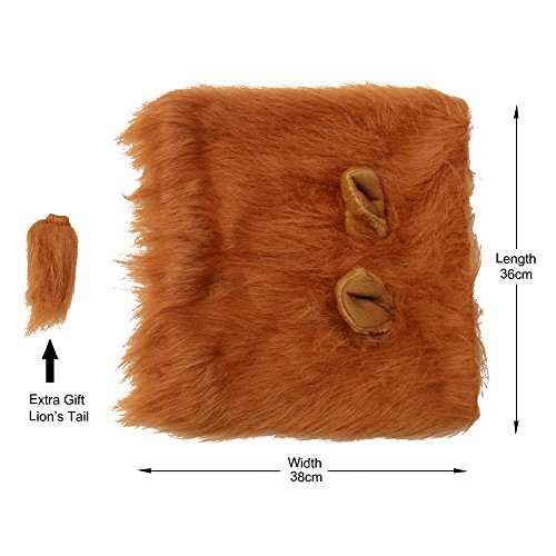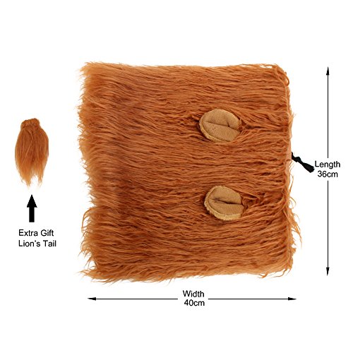 Note: Due to the different light, the color of the dog lion wig may be different. In addition, the mane you receive may be flat, you can put the lion's wig on the dog's head, and use the brush and hairspray to make the lion mane fluffy then your dog will look more like a real lion. Due to differences between monitor displays,actual color may vary slightly from image. Because of the different measurement methods,pls allow 0-1/2inch difference due to manual measurement. Tips: If your dog for the first time to wear with discomfort,please make it for more comfort and then wear. Extra Gift:Lion's Tail 0