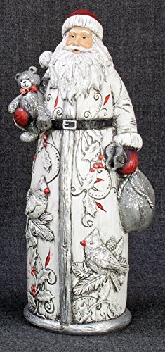 -. Binding : Kitchen -. Brand : One Holiday Lane -. Color : Tree -. Feature : Celebrate the Christmas tradition with our classic Kris Kringle Santa Claus figurines / These wood-look figurines each feature a different Christmas gift in hand and both characters are adorned with old-world detailing of holly and birds; perfect in any vintage-style home decor / Classic Christmas coloring of red, white and silver means that these decorations will look great almost anywhere! / Each Kris Kringle makes a beautiful display on its own; place the two together to make a bigger statement or add to an existing Christmas display / Resin. Size: 12" H x 5 ½" W x 4" D. -. IsAutographed : 0 -. Label : One Holiday Lane -. Manufacturer : One Holiday Lane -. ProductGroup : Home -. ProductTypeName : HOME -. Publisher : One Holiday Lane -. Studio : One Holiday Lane -. Title : Red and White Glittered Wood-Look Santa Claus Figures Christmas Tabletop Holiday Decorations