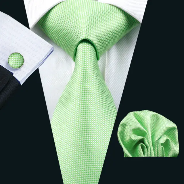 LS-866 남성 넥타이 녹색 격자 무늬 100% 실크 배리. 좋아서 넥타이 손수건 커프스 세트 남성 정장 웨딩 파티 2016 클래식 뜨거운 판매