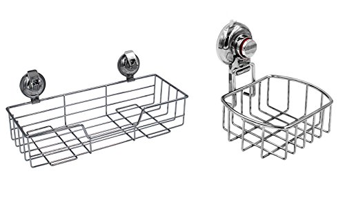 EPG Vacuum Suction Bathroom Storage Accessories - Shower Caddy Shelf and Soap Dish, Chrome