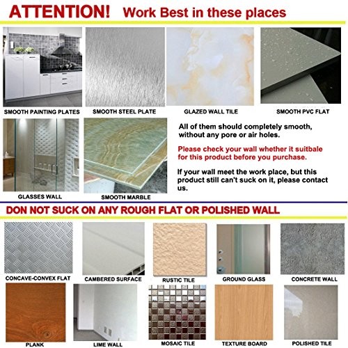 - Suitable for any smooth places but not work over grout lines or on porous surfaces, as follow: wood, porcelain, marble, wallpaper, natural stones such as Travertines, painted wall & any surface that is bumpy and etc