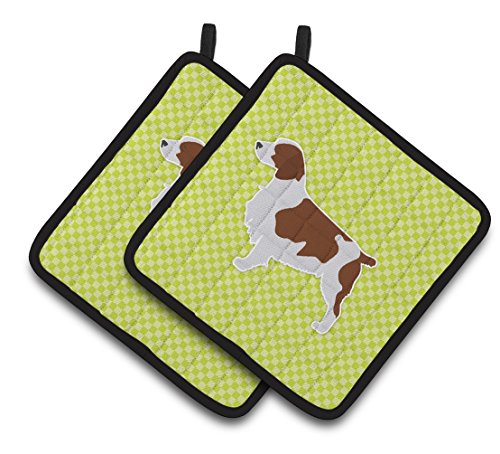 Caroline's Treasures Welsh Springer Spaniel Checkerboard green Pair of Pot Holders BB3800PTHD, 7.5HX7.5W, Multicolor