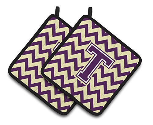 Caroline's Treasures Letter T Chevron Purple & Gold Pair of Pot Holders CJ1058-TPTHD, 7.5HX7.5W, Multicolor