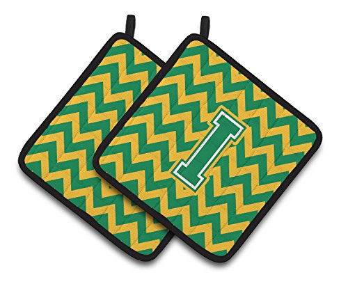 Caroline's Treasures Letter I Chevron green & Gold Pair of Pot Holders CJ1059-IPTHD, 7.5HX7.5W, Multicolor
