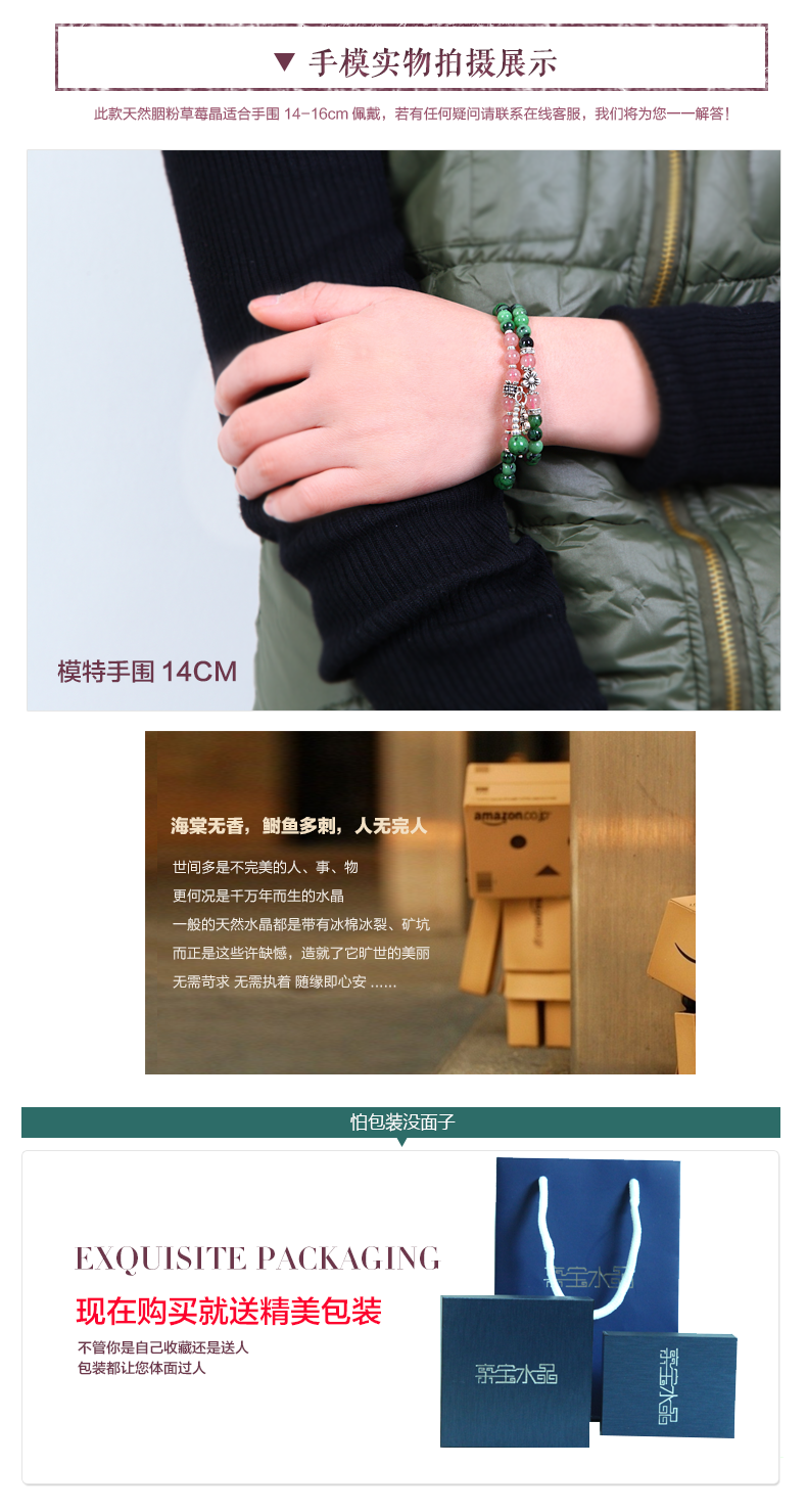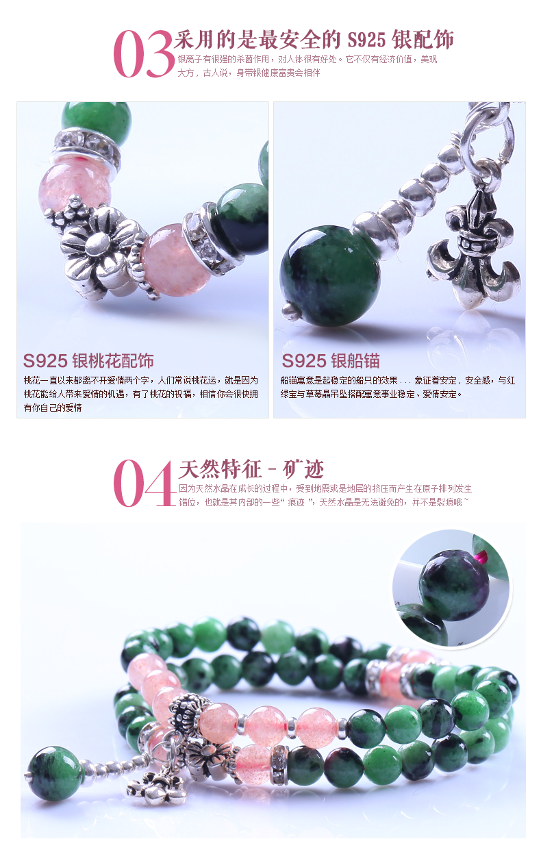 此款双缠红绿宝搭配草莓晶手链 搭配925银配饰。