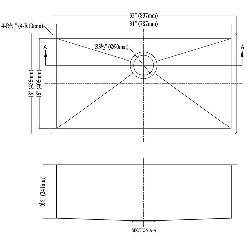 Daweier ESQ310900 Square Sink Single Bowl, 18 Gauge