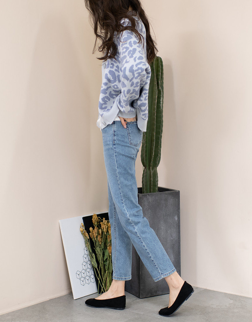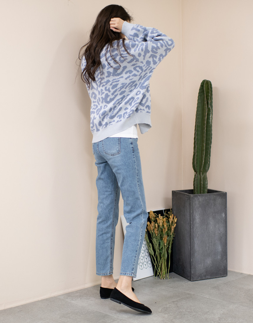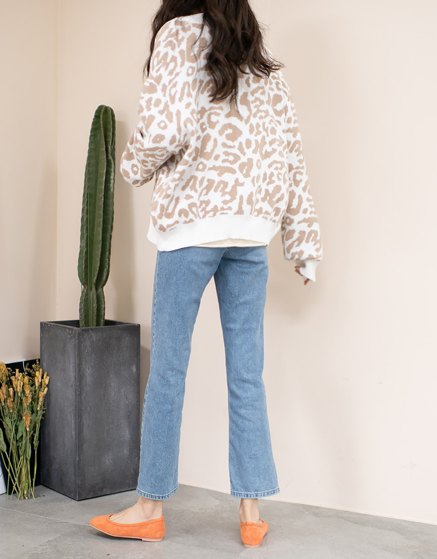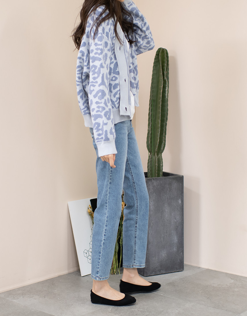 루즈하게 매치되는 호피 패턴의 가디건이에요