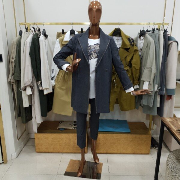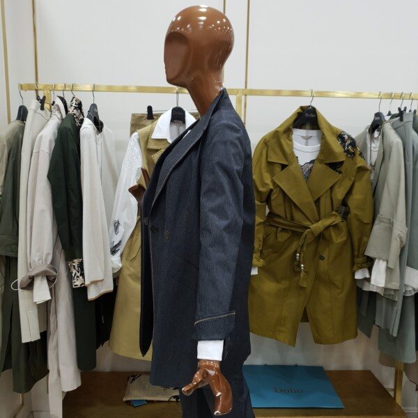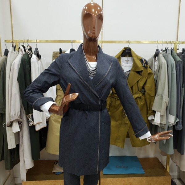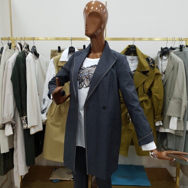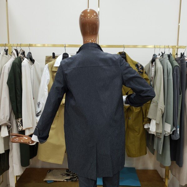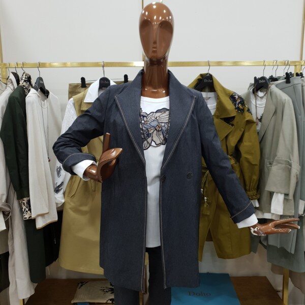 다크 그레이 컬러가 세련된 무드를 자아내는 하프 자켓 입니다