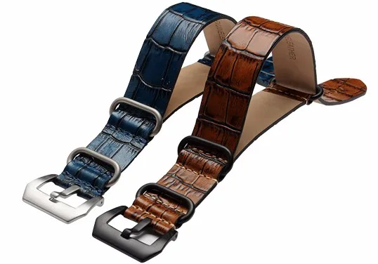 | [해외]22 24 미리메터 브라운 다크 블루 오렌지 레드 녹색 빈티지 손목 시계 밴드 스트랩 가죽 핀 실버 나사 버클 나토 Zulu 링 |