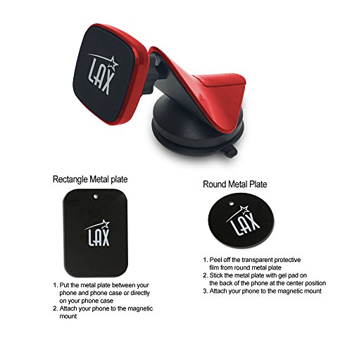 Setting your phone on a mount in your car has never been easier! LAX Magnetic Dashboard Holder for smartphones saves you the hassle of placing your smartphone securely to make sure it doesn't fall because of the strong suction cup! The LAX Magnetic Dashboard Mount features a magnetic technology, which means your smartphone will be secure and have no chance of falling. When a phone is secure in place, it becomes easier to use for GPS navigation too. The magnetic car mount for cell phones is not bulky or space consuming at all. This magnetic car mount is attached using a powerful suction cup with secure latch technology. Sturdy & Secure The reinforced suction cup ensures that the car mount stays firmly fixed to your car's dashboard or windshield. Four high-powered neodymium magnets built into the mount head keep your phone securely attached. Enjoy safe hands-free phone access on the road. Hassle-Free Installation Tool-free installation makes setup foolproof. Place the magnet metal plate in your case between the cover and the phone, Or stick on the round magnet metal on your phone or GPS. Set up the mount, attach your phone and drive off in under 60 seconds. Note: Metal plate may interfere with wireless charging. Remove the metal plate before using a wireless charger. (for compatible devices such as Samsung S7 / S6 / Note 5, Nexus 6P/ 5X/ 6) Attach metal plate directly to the back of thicker phone cases to avoid interference with magnetic attachmentFeature