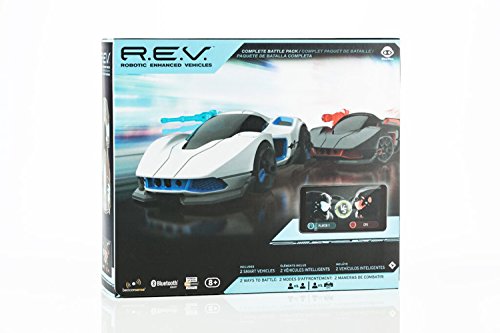 Introducing REV by WowWee. REV are Robotic Enhanced Vehicles that are app-enabled and built for battle. REVs can think, drive and fight for themselves- no player two required. REVs are hardwired to outwit, outplay and outlast YOU, their human opponents. Each vehicle is outfitted with Beacon Sense technology, a proprietary indoor GPS system that enables them to sense their surroundings and navigate accordingly. REV does not require a special surface or mat to play on, and up to 16 different vehicles can enter the game at any time. Each REV Starter Kit comes with two specially-equipped vehicles; just download the free app and jump into the driver seat, while setting the second REV to AI Mode. Square off against your REV opponent in multiple game modes like Survival, Arena, Capture the Flag, and more! But be careful. Intelligence can be dangerous.