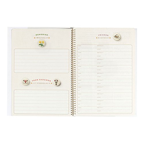赤ちゃんの成長の様子を1歳まで毎日たっぷりと記入できる育児ダイアリーです。ダイアリーページは、バーチカルタイプの時間軸を見開きで配し、1週間の出来事を一目で把握することができます。