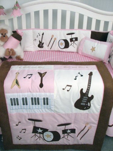 -. Title : SoHo Pink and Brown Rock Band Baby Crib Nursery Bedding Set 13 pcs included Diaper Bag with Changing Pad & Bottle Case