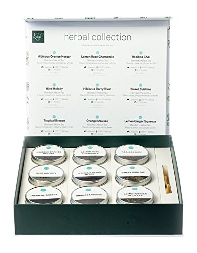 Rosali Tea Gift Collection, 9 Artisanal Teas in Tins with Engraved Teaspoon (Herbal Collection)