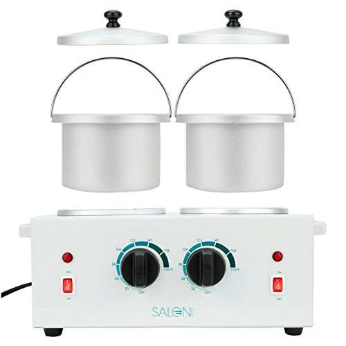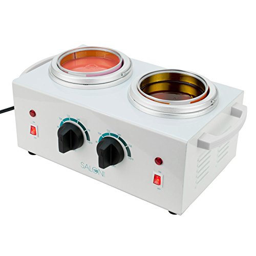 Excellent quality DOUBLE wax warmer. Your new professional salon wax warmer comes with a basket insert for loose wax, but both openings are designed to fit standard wax cans. Each of the two sides has independent temperature settings so you can maintain different temperatures on each side.• Double pot wax warmers for multiple treatments or extra large waxing areas.• Adjustable, independent temperature settings of 0-80 Degrees Celsius (32-176 Degrees Fahrenheit)• Removable inner wax basket.• Metal construction body and pots.• 4" Pot opening to accommodate most wax containers on the market.Feature