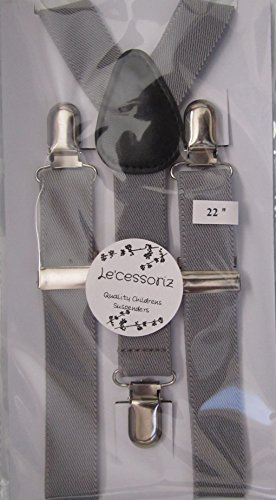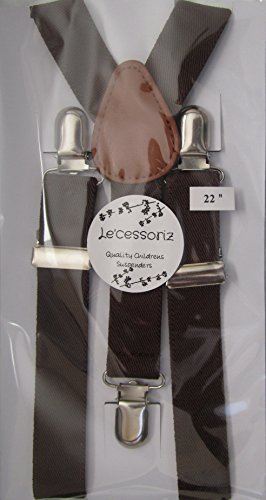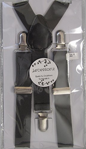 Product Description Dress your child with class and sophistication with these Le'cessoriz Childrens Suspenders, perfect for all ages: babies, toddlers, and kids! Just choose the right size and the color you wish and you will be delighted of your child's chic appearance. His or her pants will no longer fall down. This features a Genuine Leather piece construction that adds great comfort Ideal for everyday use and great hold up. Choose from the large selection of sizes and color to match an outfit for every occasion. The come in in the following three sizes: ? Extends to 22" for 6 Months to 3 yrs ? Extends to 26" for 3 yrs to 8 years. ? Extends to 30" for 8 Years to about 5 ft. tall. Material: 100% Polyester with soft genuine leather crosspatch. Care: Machine washable. Excellent gift idea for any occasion. Great for boys and girls alike! . 0