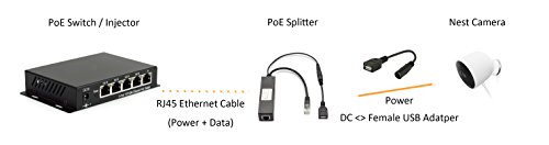 ✔ IDEAL FOR NEST CAM OUTDOOR, ARLO BASE STATION & WALL MOUNTED TABLETS – We love our Nest Cam Outdoor, but the camera’s bulky white A/C adapter is not a nice sight. You may even have to drill a 2.2 inch hole into your wall to install the cam – No more. With our PoE splitter you can power your Nest Cam directly with your Ethernet cable bypassing the ugly A/C adapter. You can also power your Arlo PRO base station as well as various wall mounted tablets (iPad and Android devices).
