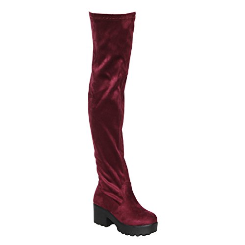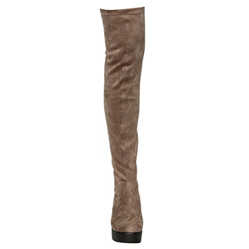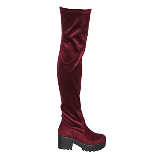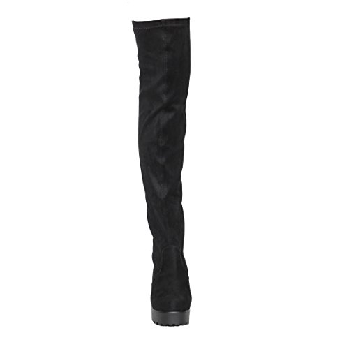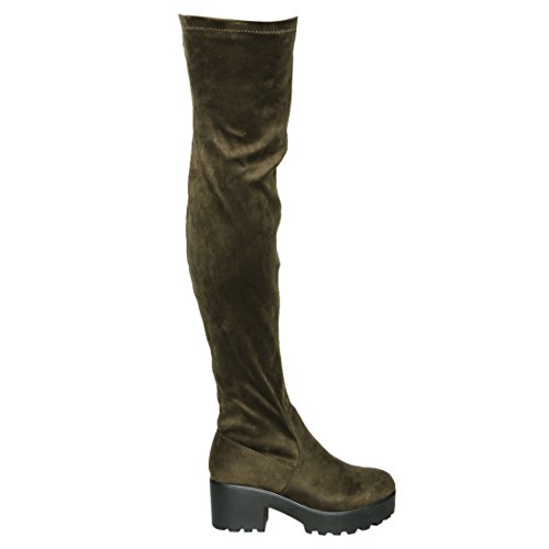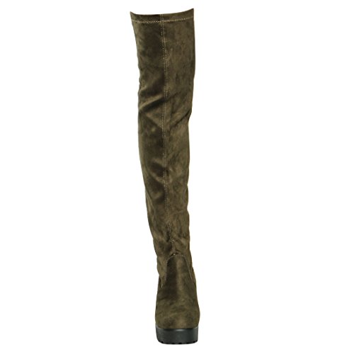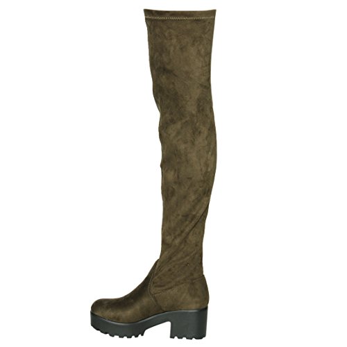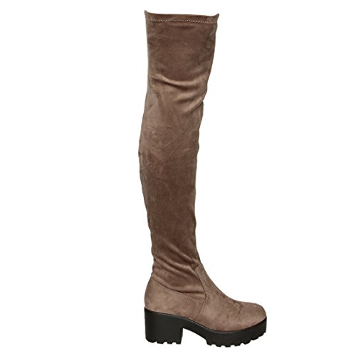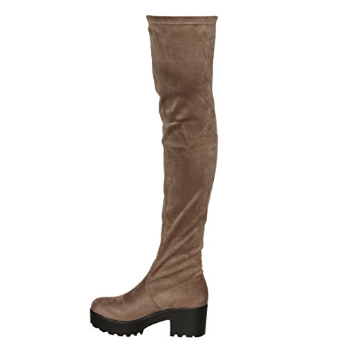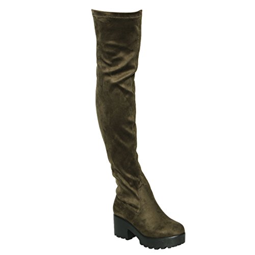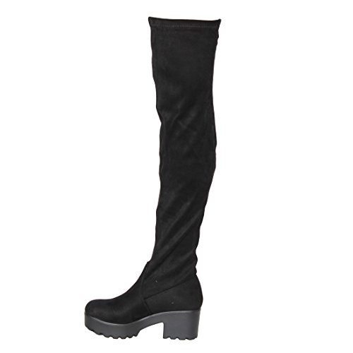 Product Description Bring the style this season with these over the knee high boots.Design with a easy pull on elasticated fastening,a clean simple upper,a platform chunky heel silhouette,a traction outsole and smooth lining. 0
