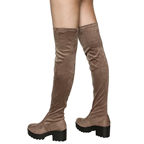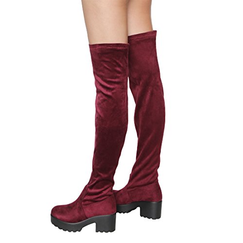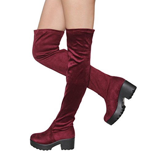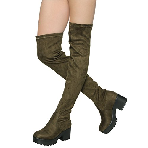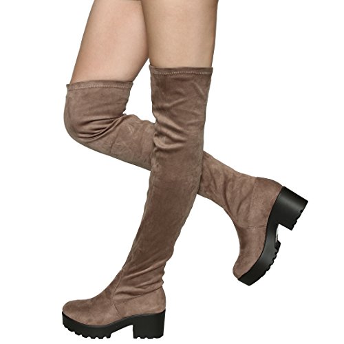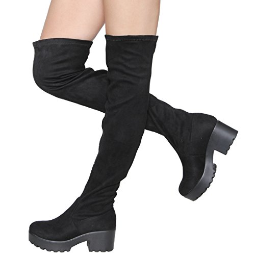Beston EJ76 Women's Stretchy Snug Fit Block Heel Over the Knee Thigh High Boots
