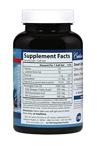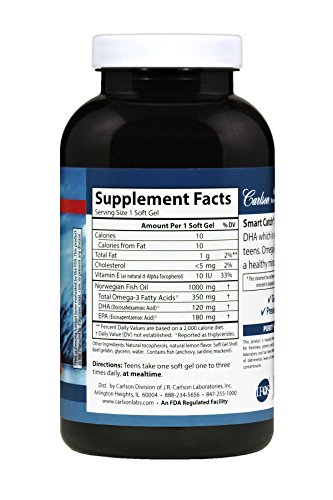 -. Title : Carlson Smart Catch Fish Oil for Teens, Norwegian, 350 mg Omega-3s