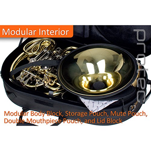 Studio : Pro Tec Publisher : Pro Tec Binding : Electronics Product Description Designed to fit the smallest and largest wraps (including the Geyer wrap), Protec’s new Screwbell French Horn PRO PAC allows for a custom fit with sections for sheet music, a mute, and small accessories-all in a single lightweight compact case. The ultimate in transportation, the PB316SBDLX is carry-on friendly with most airlines, includes a padded shoulder strap, and is compatible with Protec’s optional backpack strap (model# BPSTRAP) and optional trolley (model# T1). Lined with soft nylex, the interior can be customized using the various modular parts: body block with secure strap, lid body block, zippered accessory pouch, and double mouthpiece pouch. Each modular part features hook loop fasteners that allow it to be positioned anywhere inside the case. The removable mute pouch features a drawstring closure and is securely held by retaining straps. The lightweight frame is made of shock-absorbing wood and is covered with water-resistant 1680 ballistic nylon.? 0