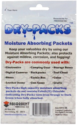- Package contains 5 of the indicating silica gel dry-packs, measuring about 2 1/2-inch by 3 1/2-inch per packet and weighs 1-ounce each packet