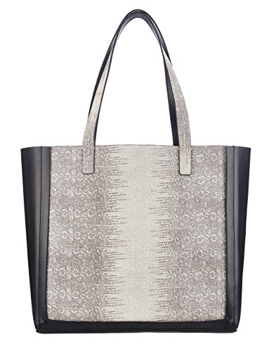-. Feature : Classic tote featuring solid sides and base with embossed lizard print on straps and front/back panels