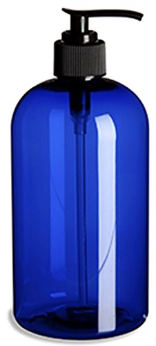 16 Ounce Cobalt Blue Plastic PET Plastic Bottle with Black Hand Lotion Pump with Gift Card [Pack of 3]